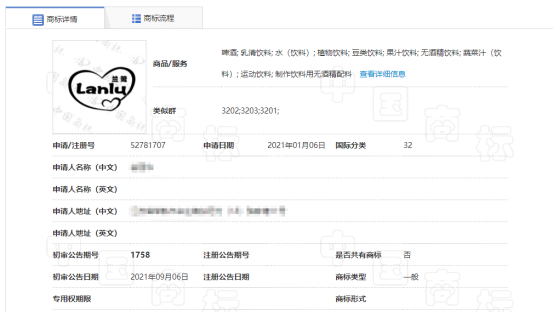 被异议商标“兰鹭LANLU及图”指定使用在第32类“啤酒;制作饮料用无酒精配料”商品上。异议人引证在先注册的第7994121号“图形”商标、第10445681号、第24593344号“牛栏牌COW&GATE及图”商标、第17360330号“牛栏乐儿COW&GATE及图”商标等核定使用在第29类“以水果为主的零食小吃;豆奶;牛奶”等商品上。双方商标指定使用商品在商品功能用途等方面存在一定区别,不属于类似商品。异议人称被异议商标的申请注册侵犯其“心形图形”美术作品的在先著作权。异议人所称的“心形图形”美术作品具有一定独创性,属于《著作权法》保护的作品。异议人提供的“心形图形”美术作品著作权登记证书扫描件、“心形图形”系列商标注册证明材料扫描件、京东商城、天猫商城等电子商务平台异议人店铺网页信息及部分销售网页、部分产品图片扫描件等证据表明,异议人对该“心形图形”美术作品享有在先著作权。被异议商标与该美术作品在构图要素、设计风格、造型特征、视觉效果等方面高度相似,已构成实质性近似。上述美术作品作为商标已经获准注册并在商业活动中实际使用,且已为相关公众知晓,被异议人有接触到该作品的可能。因此,被异议人申请注册被异议商标侵犯了异议人享有的在先著作权。