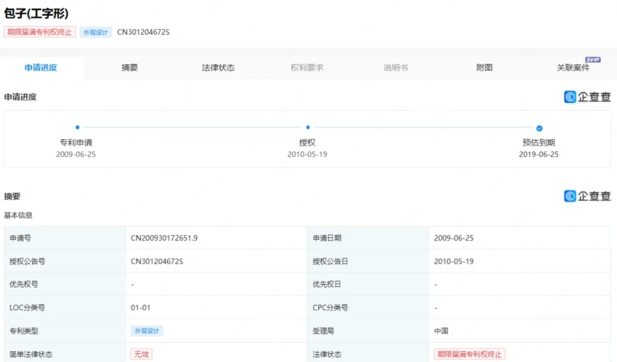 2009年6月25日,信华公司为其独具特色的“工字形”包子申请了外观设计专利,并于2010年5月19日成功获得授权。